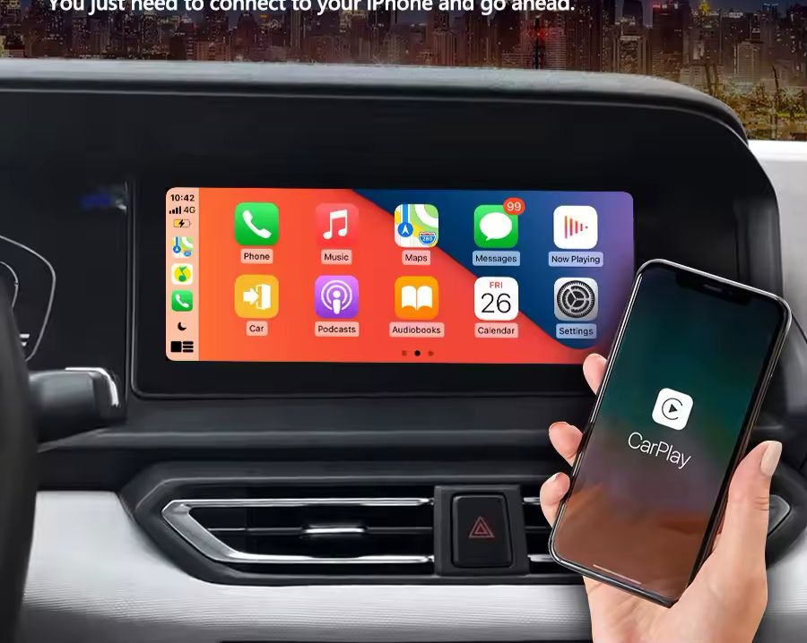 این مانیتور با پشتیبانی از فناوری های میرورلینک، اپل کارپلی و اندروید اتو امکان اتصال مستقیم گوشی به صفحه نمایش خودرو را فراهم می کند. به کمک این قابلیت، می توانید صفحه گوشی خود را روی مانیتور مشاهده کرده و به اپلیکیشن هایی مانند تماس، پیام، موزیک و نقشه دسترسی پیدا کنید. این ویژگی باعث می شود راننده بدون نیاز به استفاده از گوشی حین رانندگی، به راحتی همه امکانات آن را از روی صفحه خودرو کنترل کند.